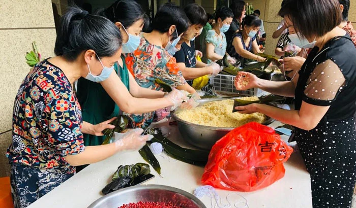 Assistant Li of Hangzhou Noble Lake said that there are at least 40 or 50 rice dumpling masters in the residential quarter and that rice dumplings stuffed with meat, candied Chinese date, and sweet red bean paste were major choices in this year’s Dragon Boat Festival activity of the residential quarter.