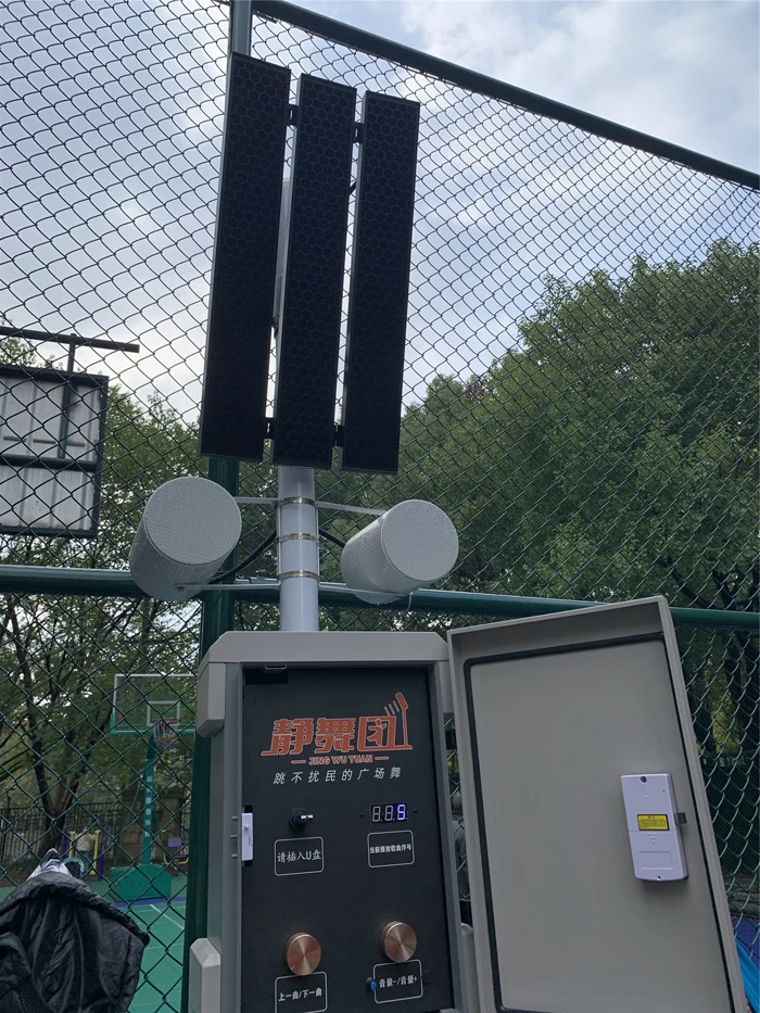 11月中旬,在万家星城小区小广场,一群早锻炼跳舞的业主们,他们已经用上了新装备,这就是万家星城社区为广场舞场景配置的定向音响设备,它有效控制了声音传播,一位阿姨热情地说:“现在我们放的音乐音量不会再超标了,这个系统已经为我们设置好了,跳舞不扰民,我们也开心。” 小广场旁边还设有一个噪声监测器,时刻监测噪声是否超标,超标数值会显示橙色,并有“降低音量”提醒,广场舞可以放心跳,周边业主投诉也随之降为零。