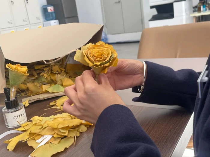 从捡到第一片银杏落叶开始,滨辰物业第一工业综合体服务中心的物业人员就开始细心整理这片片落叶,他们用金黄的银杏落叶创作了一组“玫瑰花与圣诞树”的作品,展现了他们对发现生活之美的思考。走在城市的街角,亮眼的圣诞树已成为大家打卡拍照的热门对象,而这一组落叶版圣诞树,是不是也让你有一丝动心了呢?