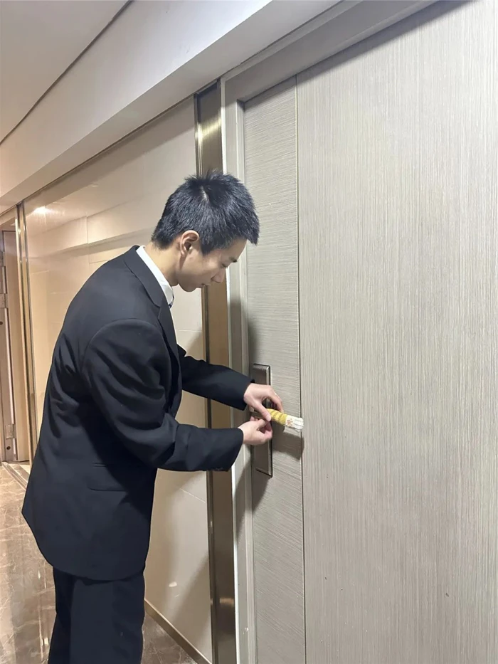 是的,近日,众多滨江业主在回家打开门的一瞬间,触摸到了一线滨江物业人传递的这份心意,在迎接寒冬到来之时,他们为业主家的门把手一户户地套上了贴心暖意的门把手套。就如物业人所说,这份指尖上的温暖触手可及。