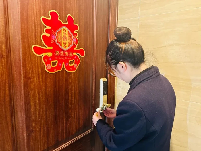 杭州悦潮府小区物业人说,定制的门把手套到货后,12月1日早上,7个物业人员每人按楼栋进行分配套门把手套,大家争分夺秒,终于在当天上午为小区690多户业主家入户门都装上了暖手护套。
