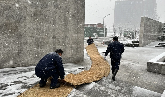 金华的这场大雪,厚厚地覆盖了万固西江月小区,同时,也给业主出行带来了不便。金华万固西江月物业服务中心提前制定了紧急预案,一大早,物业主任带领大家对园区出入口、车库口、单元门,以及主要路段清除积雪,铺设草垫子,为出行的业主家人们保驾护航。