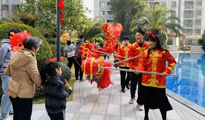 “迎龙年、寻龙味”,杭州海潮御品物业服务中心为业主们举办了“龙”主题的迎新春游园活动。写对联、送福、非遗糖画、新年献唱、剪窗花、DIY龙灯、新年幸运签等等。业主们挥毫泼墨,在“福”字中表达对来年的祝福。金龙献瑞,最后一场舞龙表演迎龙年,将活动气氛拉满。