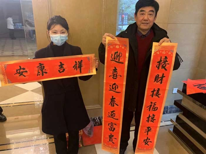 活动最后,物业为业主们发放春联,送上新春祝福,业主表示,物业组织书法老师为大家写春联,比外面买的更有意义。