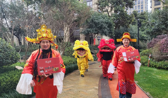 宁波滨涛府小区“欢喜闹元宵”,物业服务中心邀请专业舞狮表演,狮口现出“风调雨顺、国泰民安”对联时,业主连声喝彩,物业秩序主管装扮的财神,为业主分发金币糖果、手工花灯,祝愿业主财源广进。现场观看舞狮表演的业主,还开心地吃着物业人现煮的宁波汤圆。瑞龙迎春到,欢乐闹元宵,小区业主在浓厚的节日氛围中感受元宵传统习俗。