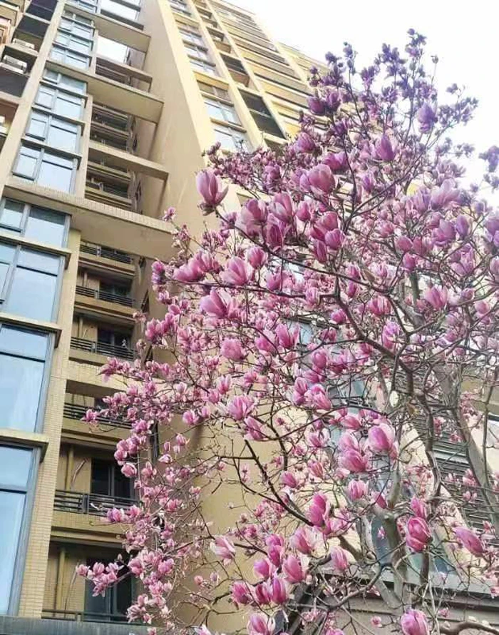 开往春天的列车,我们沿路赏花,梅花、玉兰花、樱花、海棠花、郁金香、木绣球……以花相伴,见花心喜。滨江物业服务的小区,春意盎然,花开正好,小区里赏花,自在惬意,随心而拍,不与景区游人争拥,这是小区赏花的闲适之处。
