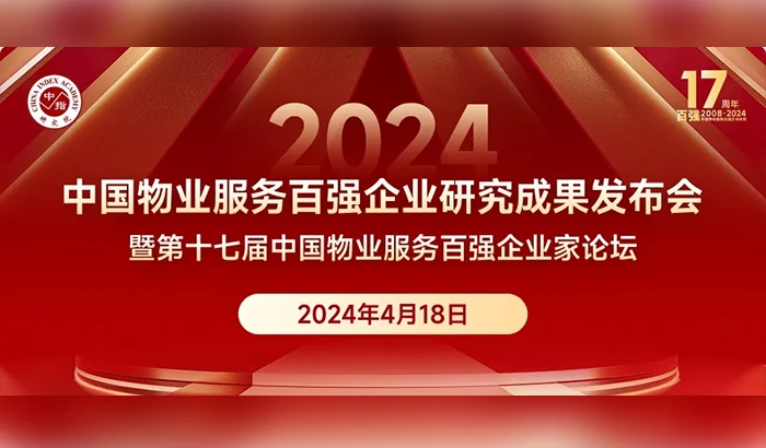 2024年4月18日,由北京中指信息技术研究院主办,北京中指信息技术研究院中国房地产TOP10研究组、中国物业服务指数系统承办的“2024中国物业服务百强企业研究成果发布会暨第十七届中国物业服务百强企业家论坛”在北京隆重召开。
