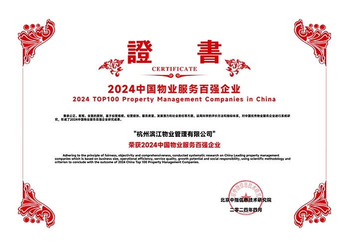 杭州滨江物业管理有限公司(以下简称:滨江物业)凭借卓越的经营智慧、强劲的市场表现及精致细腻的服务品质,荣膺“2024中国物业服务百强企业”“2024中国高端物业服务领先企业”荣誉。