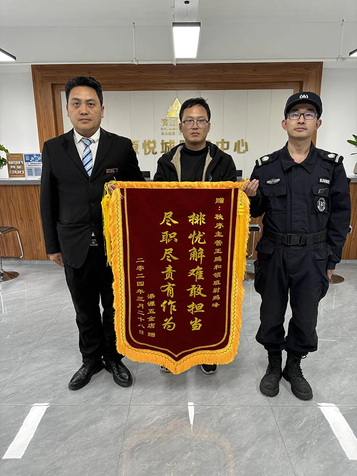 近日,一位马女士写来一封感谢信,感谢杭州滨江青少年宫滨江物业秩序门岗胡福明的一次善举。原来马女士在陪同孩子上课时,丢失了手机,她当晚凌晨12:00返回少年宫寻找手机时,遇到了在岗值勤的滨江物业队员胡福明,小胡全程陪着马女士在夜色中寻找手机,并一直安慰她,第二天小胡继续帮助寻找,找到手机后,他第一时间联系上马女士。马女士表示,勿以善小而不为,那些看似平凡的举动和温暖的话语让她非常感动。