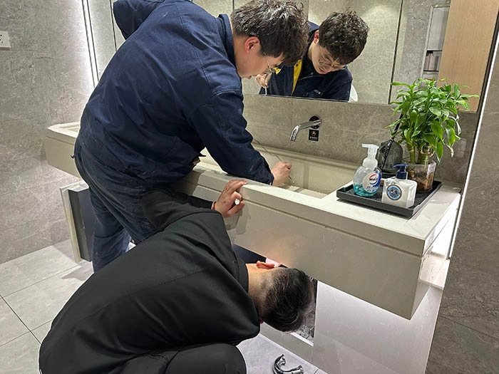 这天下午,杭州滨绿大厦客服于昊楠接到业户的紧急求助,业户称其在洗手时不慎将一枚具有特殊意义的戒指滑落至洗手池下水口。