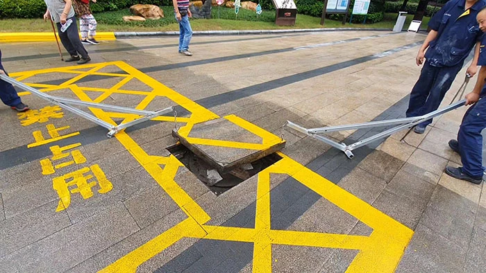 在他服务的小区中,曾遇到过这样一个案例,园区有一段石材路面,路段恰好有两个排污水井盖,常常需要打开检查,这两个井盖因为长时间被机动车碾压,导致每次打开井盖都需要费时费人费力。