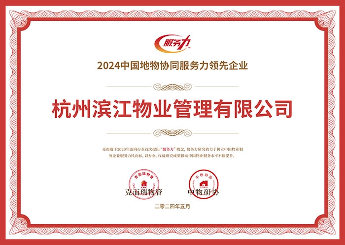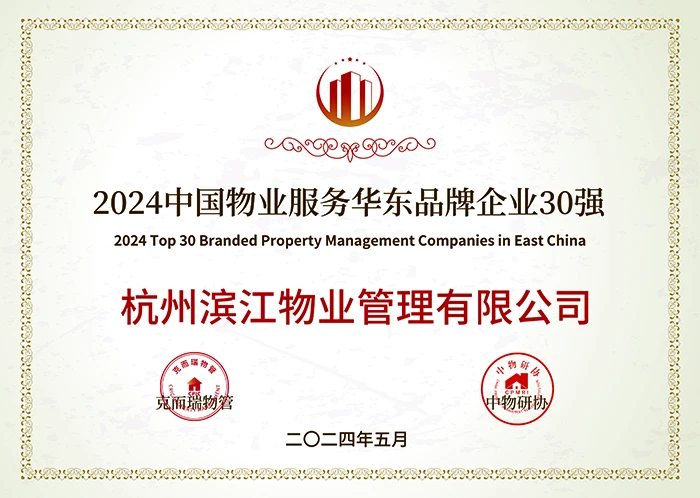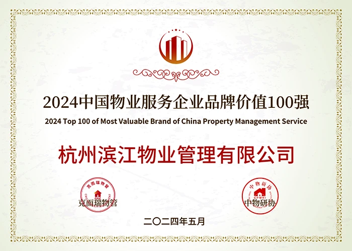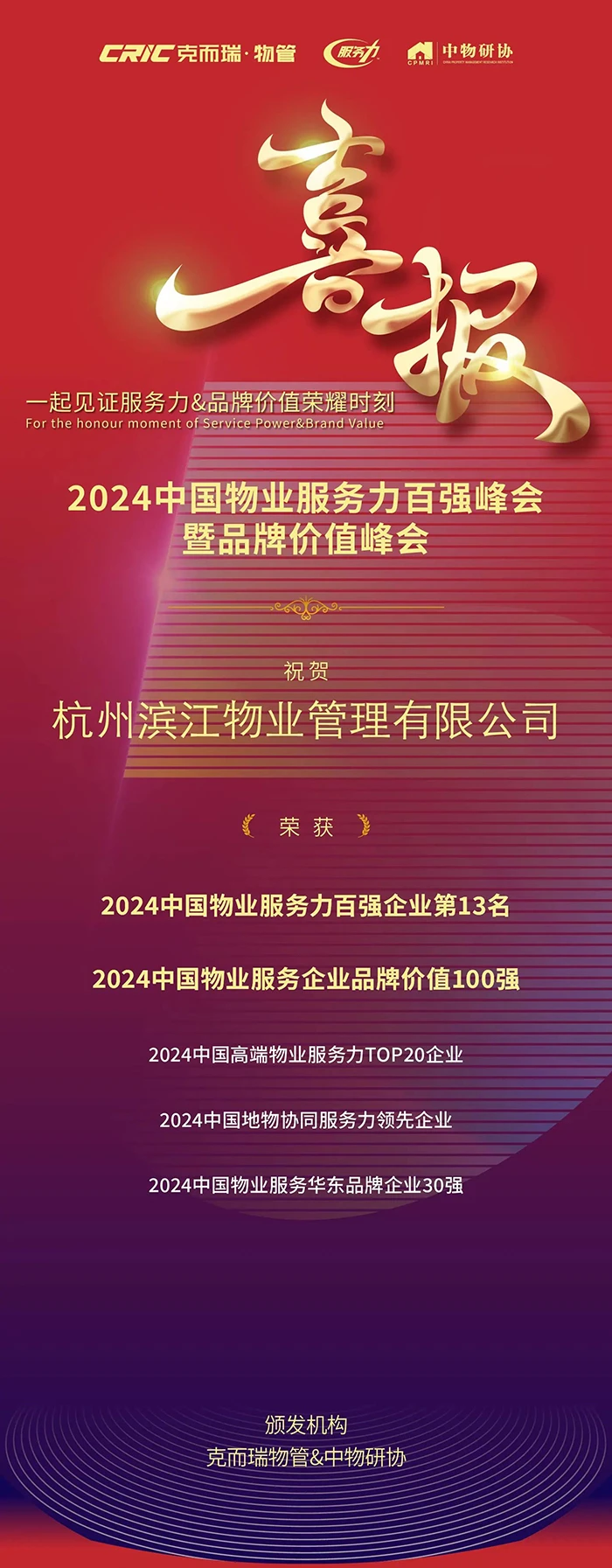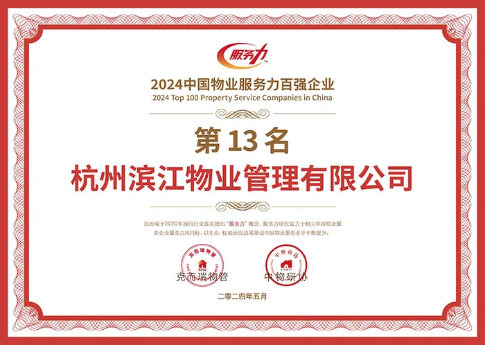 喜报丨见证“服务力&品牌价值”荣耀时刻:滨江物业荣获“2024中国物业服务力百强企业第13名”等奖项