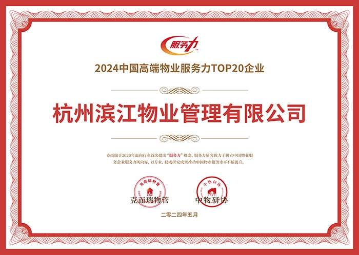 滨江物业在本次百强峰会上荣获“2024中国物业服务力百强企业”“2024中国物业服务企业品牌价值100强”“2024中国高端物业服务力TOP20企业”“2024中国地物协同服务力领先企业”等奖项!