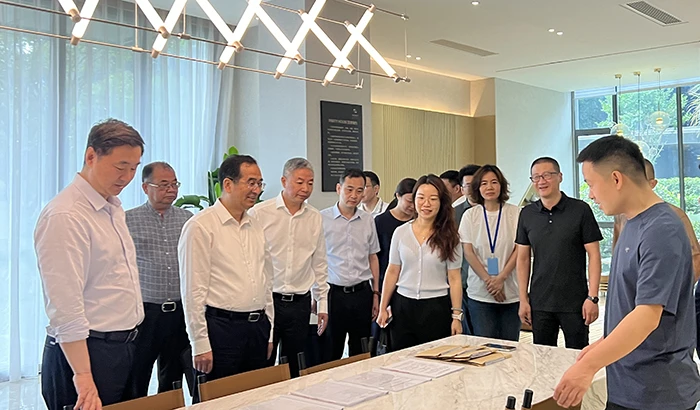 5月30日上午,浙江省住房和城乡建设厅党组书记、厅长应柏平,杭州市住房保障和房产管理局党组书记、局长王进,杭州市物业服务和维修资金管理中心书记、主任丁珊胭等一行领导在上城区副区长周骆斌、上城区住建局局长赵鹏、望江街道办事处副主任唐祖辉等陪同下,走访上城区望江街道大通桥社区杭源御潮府小区,开展小区公共收益规范化管理专题调研,滨江物业董事长余忠祥、副总裁袁海滨等全程接待。
