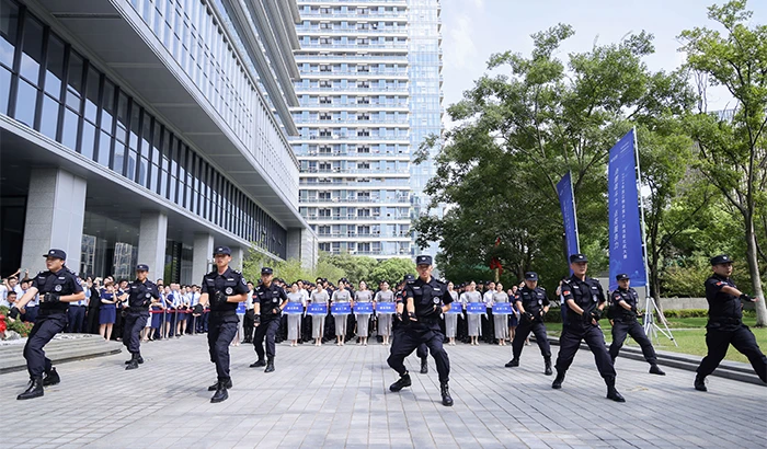 在开幕式上,滨江物业秩序队员大显身手,表演警棍盾牌操和擒敌拳,这离不开他们平时勤学苦练,练就了一身真功夫。客服表演的案场秀礼仪操,展现礼仪之邦的文明之风。