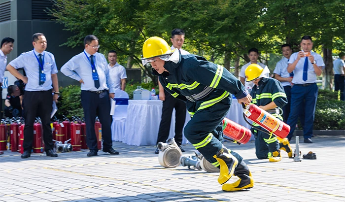 各参赛队的秩序队员们英姿飒爽,他们在军事队列动作实操中,动作标准,阳刚威武;消防处置响应是比赛的重要一项,练兵千日,用兵一时,一声号令,他们迅速响应,穿戴消防服装、水带抛接、灭火处置,操作规范,奋勇向前。情景演练有火警报警处置预案、防台抗汛应急预案、电梯困人应急预案等多个项目,这些案例与日常服务紧密相连,队员们无不展现出训练有素,担当有为。
