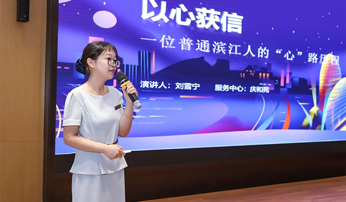 日常工作中的装修管理、宠物管理、投诉接待等,成为了本次客服比赛情景演练的考题,参赛选手们的案例来源于日常服务,他们用艺术表演的方式生动演绎,阐述了滨江物业的服务理念“从心出发,让爱回家”。