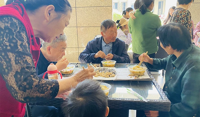今年重阳节,千岛湖半岛印象是第二年邀请老年业主吃长寿面,他们也是一碗香干肉丝长寿面,面虽普通,却分外浓郁。这份美食温情如同花香,将飘向更多小区,惠及广大老年群体。