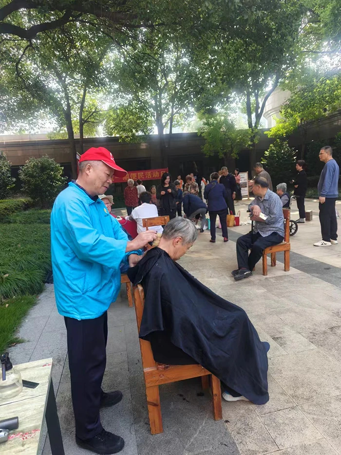 重阳节,滨江物业不少服务中心为园区老年业主送寿桃、长寿面等美食,开展滨江物业最具特色的惠民服务,为老人理发,提供磨刀、裁缝等民生关怀服务。杭州海域晶华物业管家上门为老年业主送寿桃,杭州万家花城一期二十余位老人享受理发服务,对于不方便出门的高龄老人而言,在小区内理发,他们倍感幸福,今天八旬倪奶奶既过重阳,又过生日,她在物业人的全程陪同下理发,家人放心又感谢。