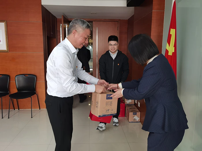 公司董事长余忠祥代表公司慰问献血的党员们,赞扬献血党员的爱心举动,希望大家继续保持这份热情,在物业工作中也积极发挥模范带头作用,以党员的担当为业主服务,让我们的党支部成为飘扬在服务一线的旗帜。