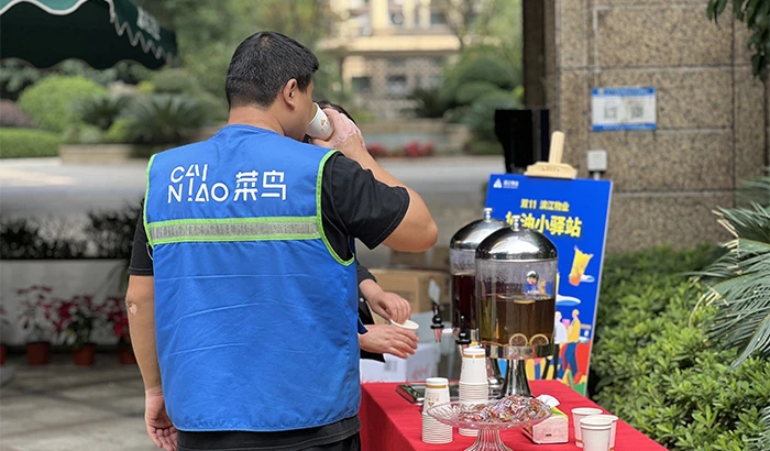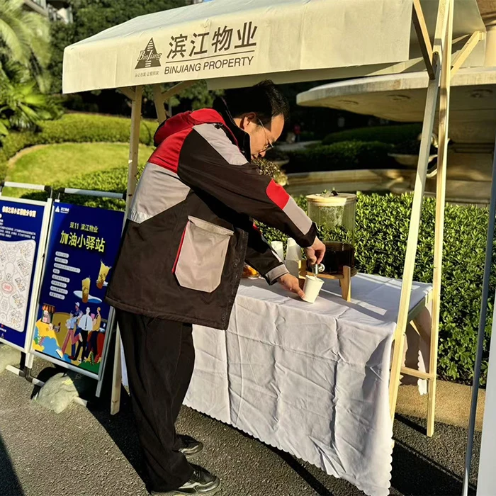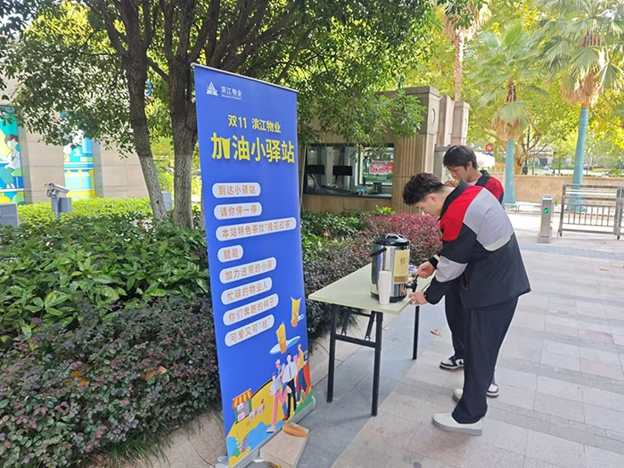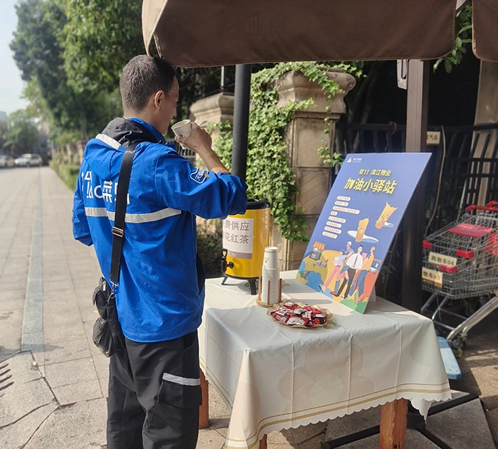 在杭州创世邸小区,为小哥们而设的加油小驿站被布置成一个橙色调的温馨角,快递、外卖小哥等进出小区的人员都会来饮用桂花红茶,这个活动无形中让小哥们觉得自己的工作受到了尊重。一名小哥说:“以前就是埋头送快递,现在物业专门为我们准备能量补充,还设了加油海报,自己的付出被看到了,这种尊重比什么都重要。”