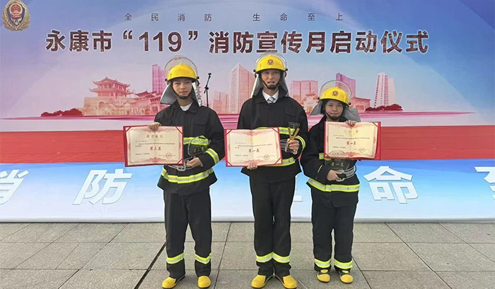 在本次“119”消防宣传月活动中,永康市举行社会消防组织技能大比武,滨江物业永康分公司各项目通过比学赶超、层层选拔,永康都市外滩服务中心张记永、马建成、方璨敏三人代表滨江物业永康分公司参赛。