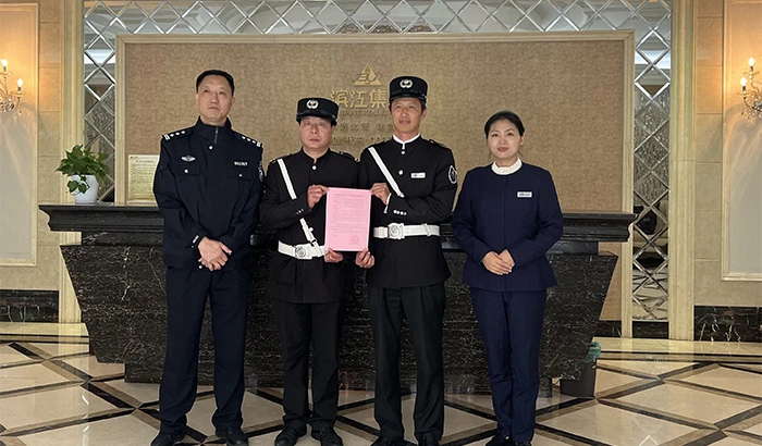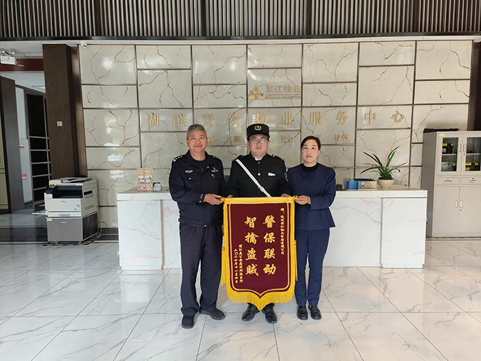 派出所感谢一线滨江物业人为平安小区做贡献,希望他们在岗位上继续保持高度的警惕心,守护好小区。这面派出所送来的“警保联动,智擒盗贼”的锦旗,将激励一线滨江物业人奋进向前。