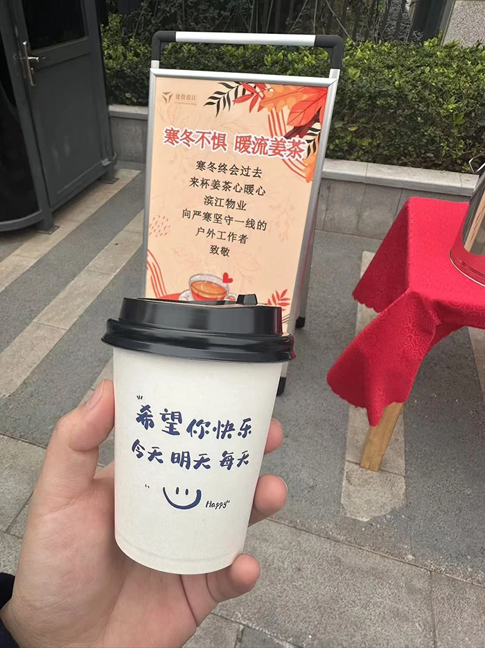 一线滨江物业人用爱心驱散寒冬凛冽,一杯杯姜枣茶构筑成一座温馨港湾,让这股暖流成为冬日里最动人的主旋律吧!