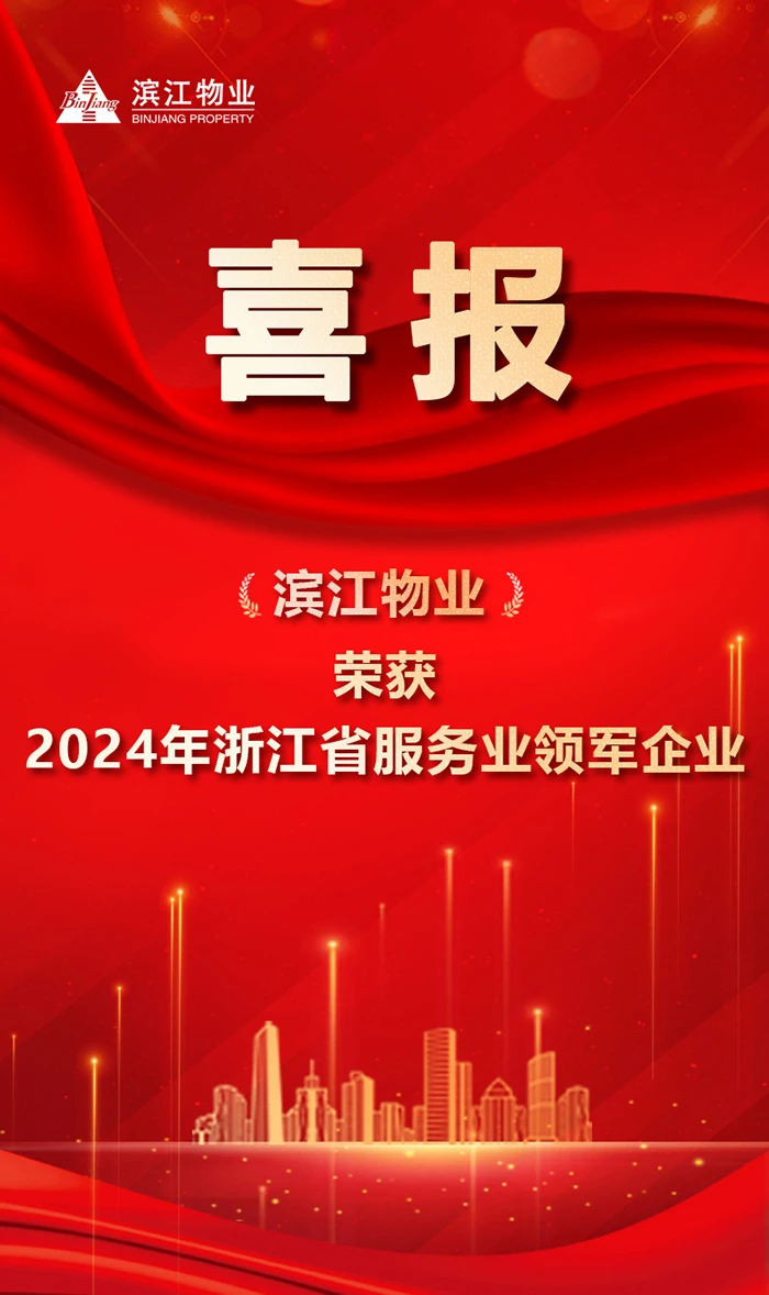 近日,浙江省发改委公布《2024年浙江省服务业领军企业名单》,滨江物业荣获“2024年浙江省服务业领军企业”。本次榜单面向软件和信息服务、人工智能服务、现代商贸、物业服务等24个服务业重点行业,上榜企业均在其所属专业领域拥有卓越表现。