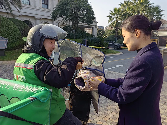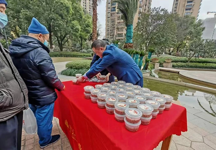 腊月初七一大早,杭州湘湖壹号物业人员就从附近寺庙里运送三百余份腊八粥到小区分发,管家看到进出业主、快递小哥们,便送上一份份香气四溢的腊八粥。腊八节来临之际,物业最关心的还有小区高龄老年业主,管家上门派送问候,将这份温暖送达。