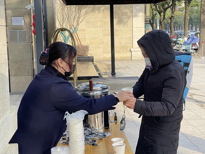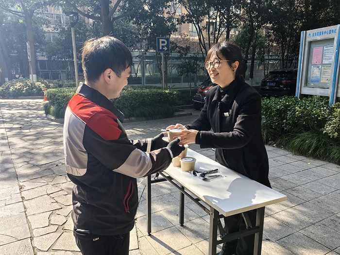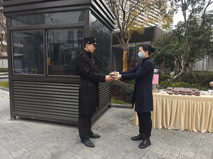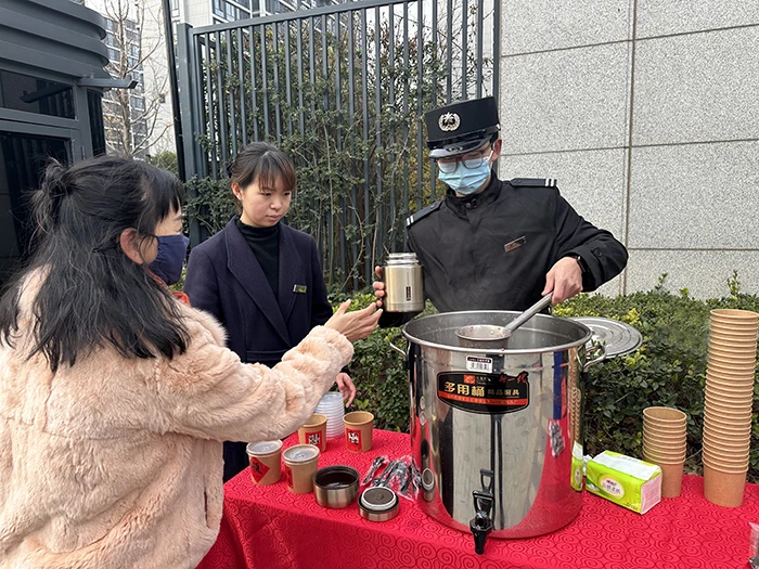 杭州澜颂奥府服务中心每年都会开展腊八节活动,凌晨时分,物业人员就开始忙碌煮粥,从煮粥到分装,一直忙碌到天亮。在早高峰之际,物业人员对过往业主、外卖小哥、环卫工人等都送上了甜蜜的腊八粥。一位外卖小哥说:“给我们发粥,让我们感受到了春节的氛围!”