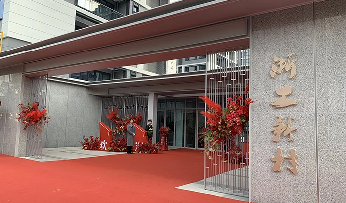 2月25日,浙工新村正式交付,入驻小区服务的是滨江物业,为了迎接这场特别的交付,物业人员用心布置,希望重新回家的业主踏上新家,爱上家,爱上小区。小区交付现场,沿街商铺红地毯一直延伸到小区内,典雅花束装置点缀现场,烘托交付的喜庆氛围。