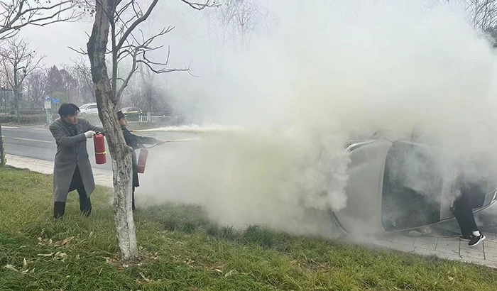 物业人员分工明确,有人拨打119和120,有人迅速从小区消防设施处取来灭火器。秩序领班鄂温凯、队员赵家乐和张万旺拎着灭火器,毫不犹豫地冲向起火车辆灭火和营救司机。幸运的是司机并无大碍,队员指引其从天窗爬出来,安全落地。