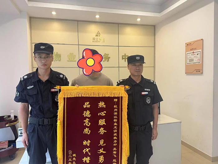 “多亏你们反应快,扑灭了火!”灭火后,姚先生马上买来瓶装水感谢滨江物业人员的见义勇为,这场救火避免了火势扩大引发更大危险。7月18日,姚先生特意来到龙润城物业服务中心赠送一面锦旗表示感谢。