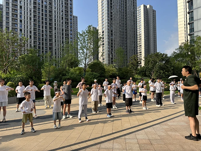 8月1日清晨7:30,乐清金色家园小跑团在西区开启晨跑。朝阳初升,微风轻拂,150名小运动员们,一大早来到集合点签到、热身,他们穿着物业定制的运动T恤,戴上发套,个个精神抖擞。小跑团最小的参与者年仅6岁,最大的15岁。
