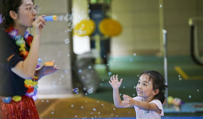 在“小业主游泳大赛”如火如荼地进行时,另一边金色黎明小区的架空层里2019滨江集团“潮动”嘉年华各类活动也在缤纷上演!现场有趣的小游戏不断,还有免费的冰淇淋吃,小朋友们简直玩得得意忘形,“乐不思蜀”!