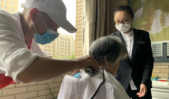衢州春江月服务中心在母亲节当天组织理发师走进小区,为母亲们提供免费理发服务.理完发的母亲们高兴地对物业说:“感觉整个人都神清气爽了,今年的母亲节礼物,很贴心很暖心,谢谢你们!”