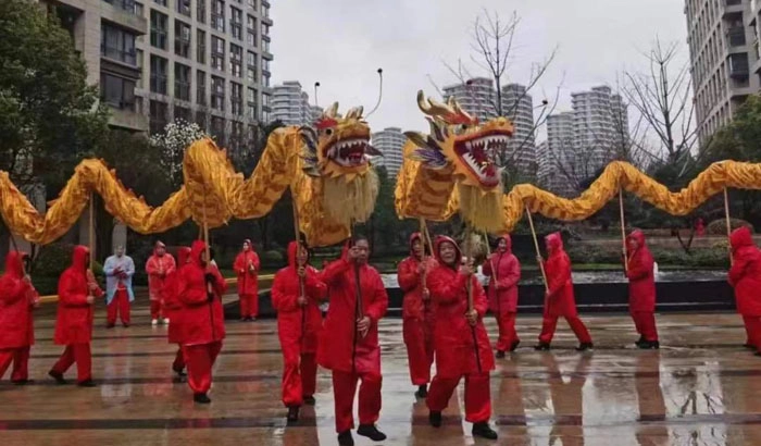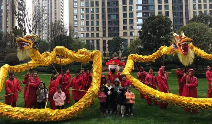 元宵节,杭州华家池服务中心传承民俗,举办了一场“舞龙游园闹元宵”活动。锣鼓声中,只见彩龙上下腾跃,左右翻飞,惟妙惟肖,让业主们看得眼花缭乱,赢得了阵阵喝彩声。物业人扮演的“高富帅财神爷”,身穿喜庆的服装、手提福袋,跟随舞龙队伍沿途派发糖果,一路惊喜不断。