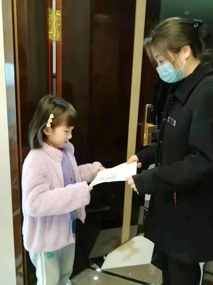 她负责的楼幢有一位78岁的奶奶,她会经常关注老人的动态,帮奶奶买生活物品,提醒奶奶出门带好随身物品。节前,洪玉霞收到了一位小朋友的画作,上面写着:小洪姐姐,辛苦了。