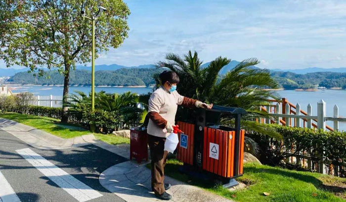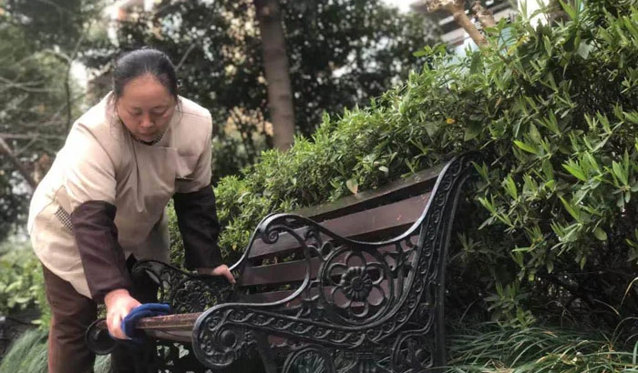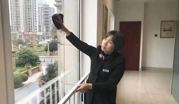 千岛湖滨江度假村服务中心保洁领班徐琳说:“现在辛苦一点都不算什么,只要能为抗疫出力,我就感到非常安心。”在防疫期间她每天对楼梯扶手、电梯轿厢、健身器材、垃圾房等公共区域消毒。今年春节,她坚持每天最早上班,最迟下班,带领保洁员做好全面消毒。