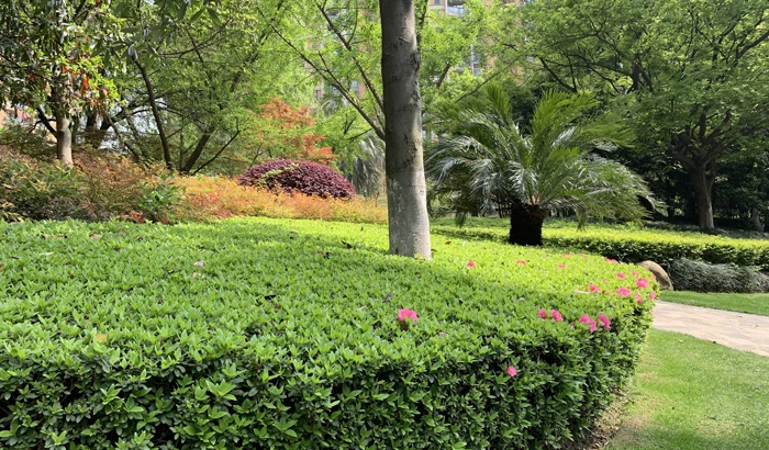 小区所有树种都有资深的年龄,因为自从金色家园2006年交付以来,它们都得到了最好的照顾与呵护,未曾掉队,桂花树、广玉兰、杏梅、朴树、榉树,柳树,还有大门口的铁树、小乔木红花继木双色品种等,都会让周师傅带领着走到它们跟前,好好仰望并为之感慨一番。