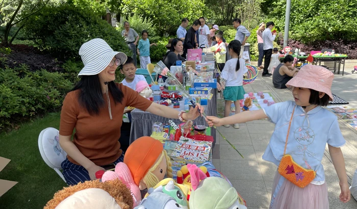 在杭州万家星城、御品湾小区,许多小朋友来练摊,他们既锻炼了自己的商业勇气,还增进了邻里间的互动,现场买卖双方讨价还价,欢呼成交,不时得到家长的鼓励。