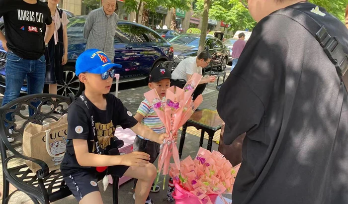 应景母亲节康乃馨、巧手妈妈的自制服装、书、袜子、玩具、软糖、自制西米露、自制奶茶,这些是滨江物业这届跳蚤街上最好卖的产品。