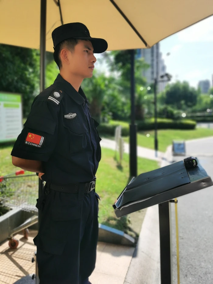 即使如烧烤一般的天气,秩序门岗的站姿依旧帅气精神。