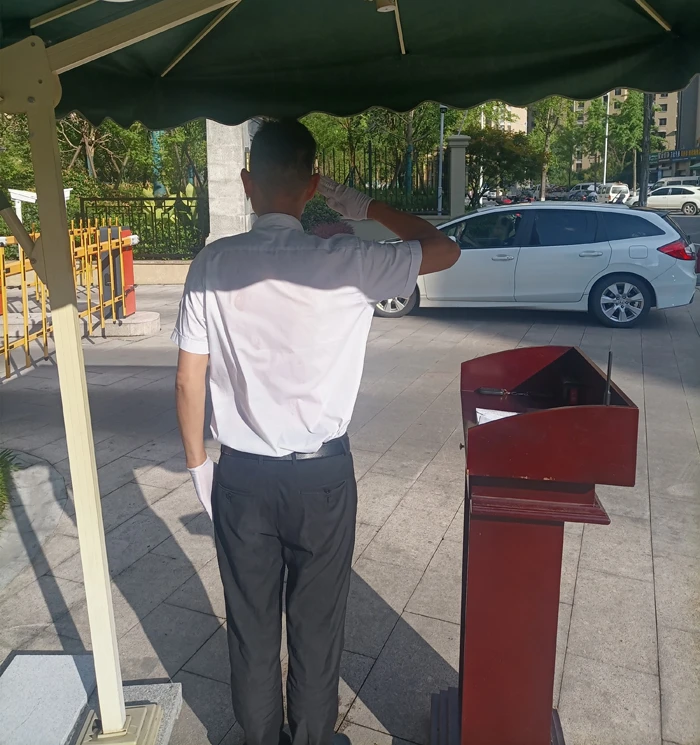 秩序门岗顶着烈日挥汗如雨,他们用自己的行动为业主撑起一片清凉。