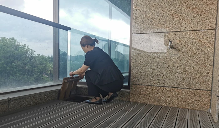 杭州海域晶华作为外接项目,今年是服务中心第一次经历抗击台风,物业从最坏处着眼,做最充分的准备,全面细致地检查园区排水系统,排除安全隐患。