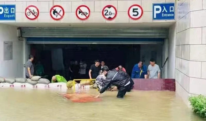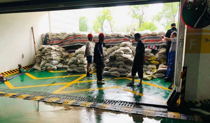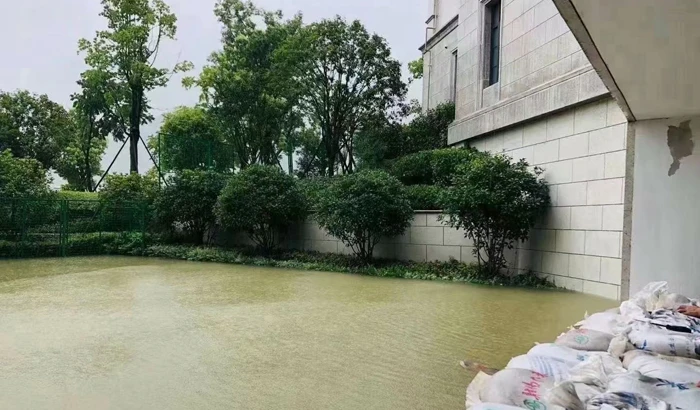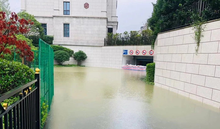 台风“烟花”虽已离境浙江,但是慢吞吞的“烟花”,威力强大,在浙江,园区树木有被大风刮倒,短时间内大雨倾注有致路面积水,滨江物业人24小时在风雨中守卫,化险为夷,提前筑起的防护墙,守住地下车库大阵地,让业主安心。