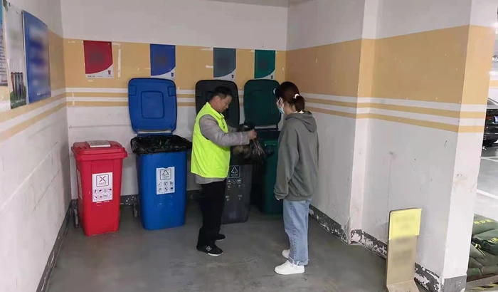 好学府小区垃圾分类定时定点投放模式准备听取业主民意,在社区指导下,滨江物业管家入户走访业主,撤桶并点、定时定点同意率达90%以上。