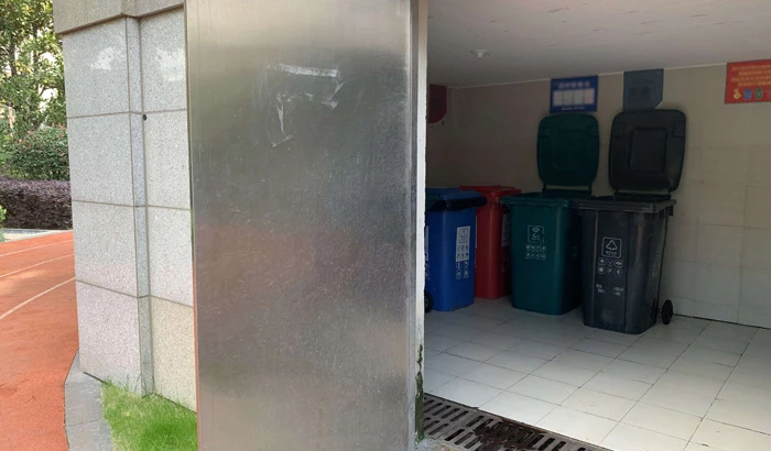 那么对于错过投放的业主,还有补投机会吗?物业俞助理介绍说,物业在园区地面垃圾房设有一处误时投放点,误时投放点为24小时投放,但运行一年以来,来这里投放的业主极少,这说明,小区业主积极参与到定时定点的垃圾分类,环保意识增强。另外,小区还有一处再生资源回收站点、一处特殊垃圾堆放点。