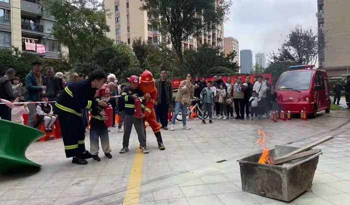 防范胜于救灾,11月7日上午,杭州紫金府小区贯穿全民消防的思想,开展消防演练,服务中心邀请了小区业主、社区、派出所民警、微型消防站,各单位联动实战演练,16位小朋友体验穿消防服实战灭火,通过活动有效提升大家火灾现场的扑救、自救、互救的能力。